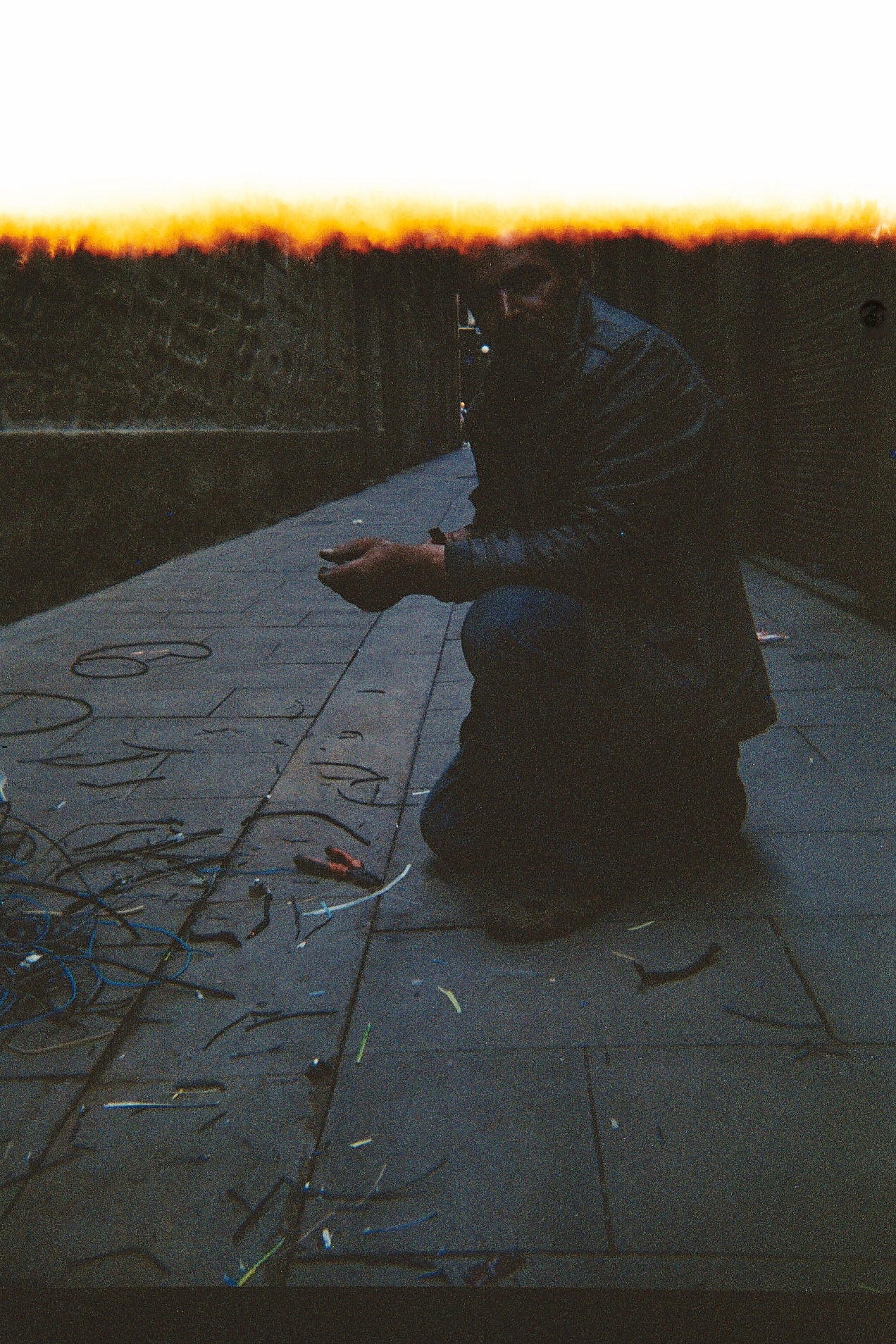 man working in the middle of the street